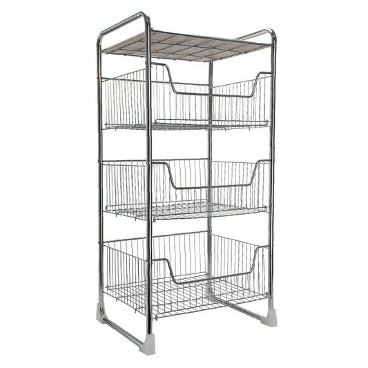 Frutera Redonda De Acero Cromado Plegable De 3 Niveles